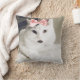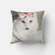 Both sides of square pillow designed with customised adorable cat photo. She is wearing a pastel pink bow on her head. Her black markings make her even more unique. Pick your very own pet photo or you may keep as shown. Makes a great gift idea for a cat lover.