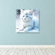 Cute White Cat Playing in the Snow Canvas Print