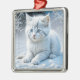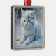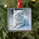 Cute White Cat Playing in the Snow Christmas Metal Tree Decoration