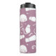 Cute White Cats Pattern on Mauve Background Thermal Tumbler