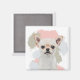 This delightful magnet features a charming white Chihuahua, captured in an adorable pose, set against a lovely backdrop of pink, green, and white abstract paintbrush strokes. The pup's captivating eyes and perky ears are sure to bring a smile to your face every time you see it on your magnetic surface. The design is whimsical and fun, making it an excellent addition to any home or office. Whether you're using it to hold up important notes or simply adding a touch of cuteness to your décor, this magnet is sure to brighten up your day. With its pastel colours and irresistible charm, this Chihuahua magnet is the perfect way to show off your love for this beloved breed.