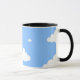 This adorable coffee mug features a seamless pattern of cute white cartoon clouds on a bright sky blue background. Perfect for adding a touch of joy and calmness to your morning coffee or tea routine. Ideal as a gift for kids, teachers, friends, or anyone who loves cheerful and minimalist cloud designs.