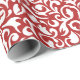 Cute White Dark Red Damask Floral Pattern Wrapping Paper