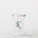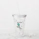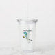 This acrylic drink tumbler with straw and lid has a cute white fancy ghost with blue eyes wearing a blue top hat with gold ribbon and holding a black cane with a golden skull on top. Customise your text with the template on the front and back.