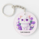Cute White Fluffy Persian Cat with Morning Glory Key Ring