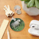 This cute keychain features a photograph of a cute fluffy sheep. The sheep is surrounded by wild flowers and long grass and is eating some leaves. It has a thick white coat of wool and a cute black nose.
