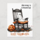 Give your friends and family a laugh this Halloween with a card that's both timely and hilarious. Our watercolor design features a weary ghost relaxing in a rocking chair next to a pumpkin with and fall leaves customisable "Ghosting is Exhausting" and "Happy Halloween" text. An illustration of a ghost hanging over lantern shown on the reverse. It's the perfect way to say "Happy Halloween" with a dose of modern humour.