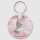 Cute White Kitten Pink Sky, Black Name, Extra Text Key Ring