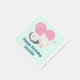 Birthday paper napkins with an adorable graphic illustration. A white kitty cat with a cute paw print image on her fur. Sleeping peacefully. A big pink heart behind her and some little stars too. Mint green background.