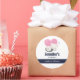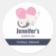 Candle / soap stickers with an adorable graphic illustration. A white kitty cat with a cute paw print image on her fur. Sleeping peacefully. A big pink heart behind her and some little stars too.