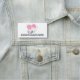 Name tag with an adorable graphic illustration. A white kitty cat with a cute paw print image on her fur. Sleeping peacefully. A big pink heart behind her and some little stars too.