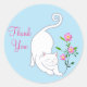 Cute white kitty cat with flowers Thank you on light blue Stickers. Ideal for most ocassions. Thank you text can be personalised.