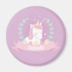 A magnet for the little one personalised with her name. It features a cute little white unicorn with magical sparkles around her horn. Flowers and wreath as decorative elements.