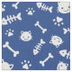 Cute White on Blue Cat Bones Fish Paw Pattern Fabric
