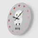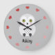 Cute white owl centre, heart clock face in ombre pink on grey backgorund. Personalise with name.