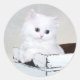 Adorable white Persian kitten in a grungy white crate on a pastel background cat lovers sticker
