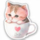 Add a touch of charm to your day with this adorable sticker featuring a cute white-pink cat cosily nestled in a whimsical tea cup. Perfect for cat lovers and tea enthusiasts alike, this delightful artwork combines sweetness and elegance, making it an ideal gift or a treat for yourself!