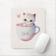 Cute White-Pink Cat in a Tea Cup (4) Mouse Pad