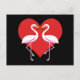 Cute White Pink Flamingos with Red Heart Holiday Postcard