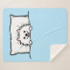 Adorable white Pomeranian tucked into bed. A soft sherpa blanket that makes a great gift for Pom lovers. Visit Jenn’s Doodle World for even more products with this cute design, as well as more dog breed themed gifts.