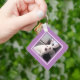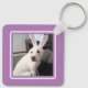 Cute White Puppy Dog With Easter Bunny Ears Purple Key Ring