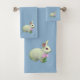 Cute White Rabbit on Wondrous Light Blue Bath Towel Set