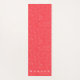 Uplifting red colour background with playful white speckles creating a seamless pattern. Monogram is in a sans serif font on the bottom of the mat. Check out our store for more yoga mat options.
