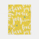 Cute white text design peace joy believe love on yellow background and white stars. Customisable fleece blanket template