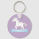 A keychain with a cute magical white unicorn with pastel red, blue and yellow mane on a blue banner with space for name personalisation. Perfect for little girls who love unicorns!