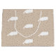 Pretty neutral beige gift bag with white whales with striped birthday hats and tiny black dots.