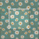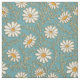Cute pattern of white and yellow daisies with gold leaf and stem accents on a teal/blue background.