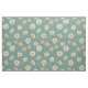 Cute White Yellow Gold Daisies Flowers Teal Blue Fabric