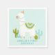 This sweet first birthday party napkin features cute llama and aqua green cactus illustrations on a pale aqua background with your personalised text". This design coordinates with our "Cute Whole Llama Fun" collection!