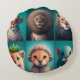 Cute wild animals wearing crowns blue round cushion
