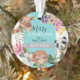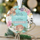 Cute Wild One kids christmas ornament, featuring the most adorable watercolor jungle animals, tropical exotic flowers and foliage with the sweet saying 'Merry Christmas' have a WILD ONE! and the child's name.