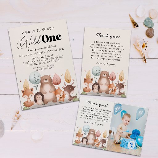 The Cute Wild One Forest Woodland Animals Birthday collection features charming forest creatures, perfect for a first birthday celebration. With earthy tones and playful designs, it includes everything from invitations to signs. Feel free to change the font colour, size, and type to suit your style.