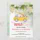 Cute Wild One safari school Bus 1st Birthday flora Invitation