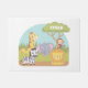 A doormat with cute wild safari animals which include giraffe, elephant, zebra, lion and monkey on tree. Personalise with name of child in text template on tree. Makes a colourful and adorable decorative piece for kids bedroom.