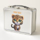 Cute Wildlife Leopard kitty cat cartoon graphic Metal Lunch Box