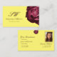 Cute Wine Red Rose Plain Yellow Initials Photo Business Card