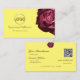 Cute Wine Red Rose Plain Yellow Logo and QR Code Business Card