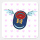 Cute winged shoe cartoon & pink hearts square sticker