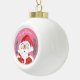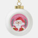 A white ball ornament with a cute winking Santa Claus on a pink background . Customise with your own text or leave it as it is .