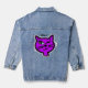 A cute fun retro ninties decal vintage aesthetic winking purple cartoon cat sassy trendy teenage vibe winky magic girl power customisable denim jean jacket. Get a fun winking cat denim jean jacket today and customise it.