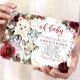 Cute Winter Animals Burgundy Floral Greenery Baby Invitation