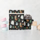 This cute wrapping paper features winter animals, wearing hats and scarves - you'll find polar bears, penguins, foxes, squirrels, and rabbits. Snowflakes, candy canes, Christmas trees, and gingerbread man cookies add a fun, whimsical touch. The background colour is black, but it can be customised to any colour you'd like. Perfect for gift giving this holiday season!