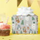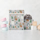 This cute wrapping paper features winter animals, wearing hats and scarves - you'll find polar bears, penguins, foxes, squirrels, and rabbits. Snowflakes, candy canes, Christmas trees, and gingerbread man cookies add a fun, whimsical touch. The background colour is grey, but it can be customised to any colour you'd like. Perfect for gift giving this holiday season!