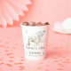 Rustic birthday paper cup with cute wolves, a snow covered log, tree and snowflakes. Perfect for a winter birthday party. The words can be changed to suit your own details or requirements