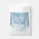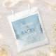 This blue winter bear baby shower favour bag features an adorable bear cub surrounded by a snowy winter background. These cute paper favour bags are sure to add a touch of whimsy to any baby shower.