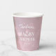 This pink winter bear baby shower paper cup features an adorable bear cub surrounded by a snowy winter background. These cute cups are sure to add a touch of whimsy to any baby shower.